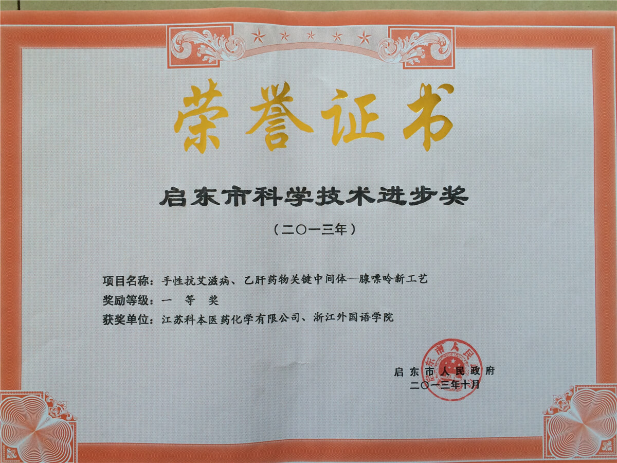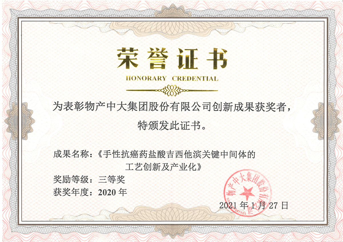 《手性抗癌藥鹽酸吉西他濱關鍵中間體的工藝創新及產業化》;高新技術企業(創新研發平臺建設獎) |